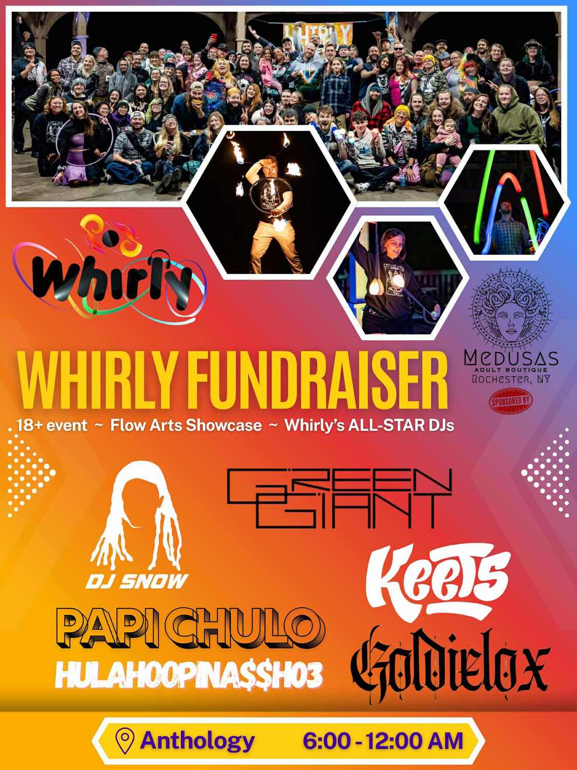 Presenting the Whirly Wednesday Fundraiser event of 2025. This show will display sets from 4 DJs that have graced the stages of Whirly Wednesday for years as well as select performers that come week after week and master their flows for all to see who attend! Without funding for Whirly these events we hold for the public come out of our spare time and out of our own pockets for years. If everyone that supports and appreciates what Whirly has done for the community then this is your chance to support this movement for years to come. Whirly is in desparate need of new equpiment as well as savings towards renting parks and pavillions and who knows maybe some more venues down the road!